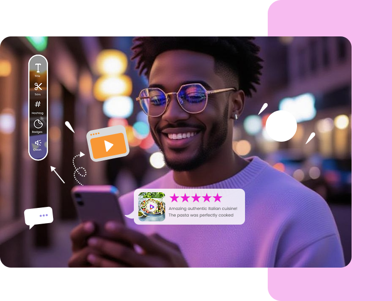 Forget boring text reviews. Tapsy’s short, fun videos capture the look, feel, and passion of real moments —at restaurants, salons, or shops. Every clip makes you a critic.
